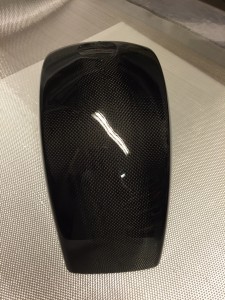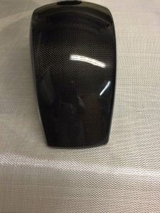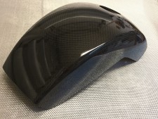Carbon fibre /fibreglass mudguard to fit vespa px,t5,lml large frame models including disc model. The mudguard has black gellcoat on the sides and clear gellcoat on the top to show the carbon fibre.